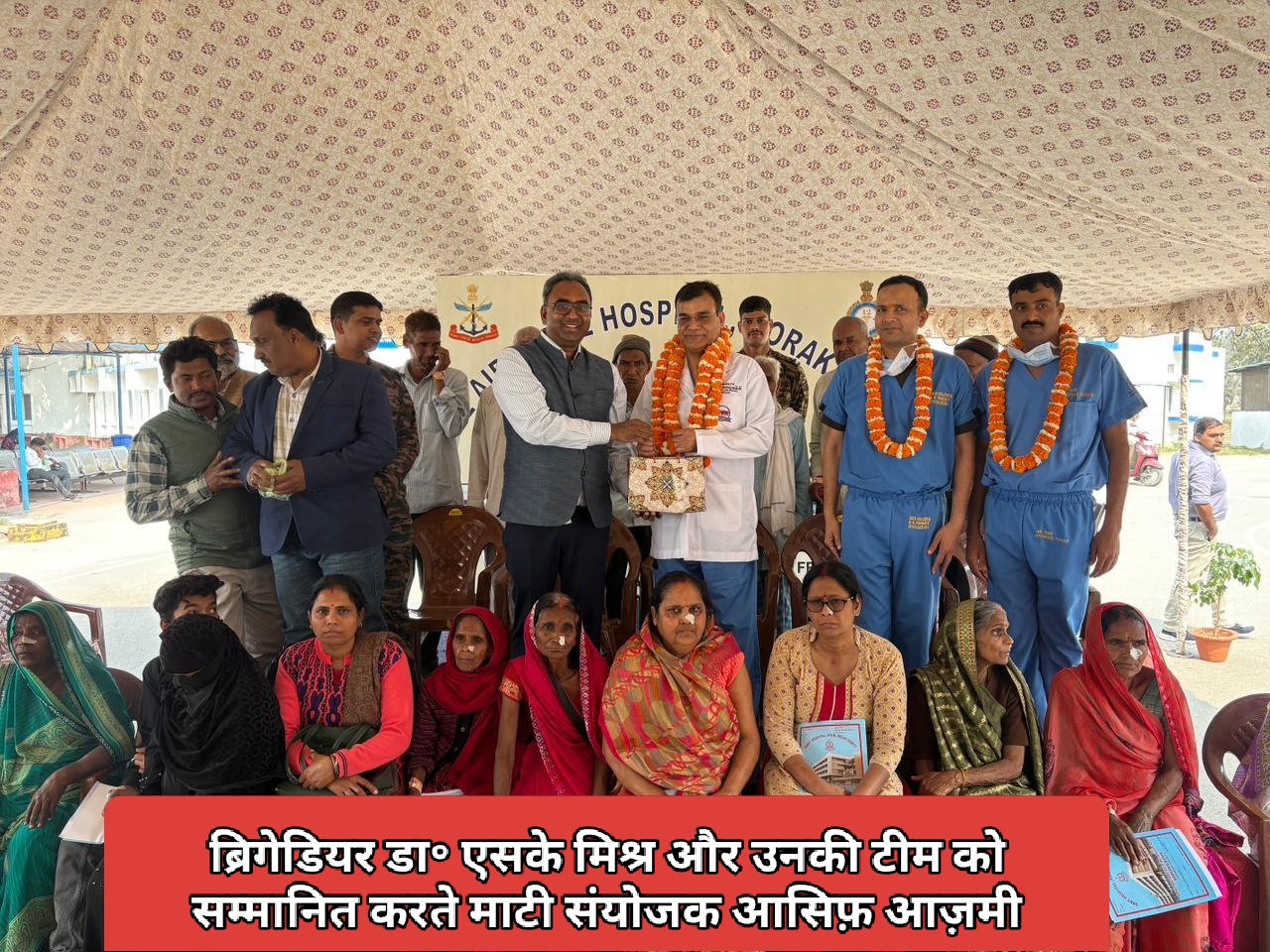 माटी संस्था और भारत सरकार के उपक्रम सोलर एनर्जी कॉर्पोरेशन ऑफ इंडिया (सेकी) के सौजन्य से पूर्वांचल के महराजगंज और सिद्धार्थनगर जनपदों में चार निशुल्क ग्रामीण स्वास्थ्य शिविरों के उपरांत आर्मी व नेवी द्वारा एक आई सर्जरी कैंप में माटी ने भागीदारी की। इस विशाल सर्जरी कैंप में माटी के स्वास्थ्य शिविरों में चिन्हित किये गए गंभीर नेत्र रोगियों का सफल ऑपरेशन किया गया। चार दिनों में ब्रिगेडियर एस के मिश्रा के नेतृत्व में, कर्नल रवि चौहान और मेजर अमृता जोशी व अन्य भारतीय सेना के विशेषज्ञ डॉक्टरों की टीम द्वारा लगभग 400 लोग सफल ऑपरेशन, लेंस व दवा वितरण से लाभान्वित हुए। ज्ञात रहे कि यह कैंप आर्मी और उनके आश्रित जनों के लिए था, लेकिन माटी और पूर्वांचल के सपूत ब्रिगेडियर मिश्रा के प्रयास से सिद्धार्थनगर, महराजगंज, आज़मगढ़, गोरखपुर आदि जनपदों से लगभग 55 आम जनमानस के भी ऑपरेशन किए गए।