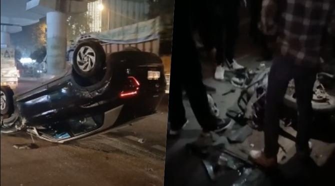Delhi Accident: तेज रफ्तार का कहर, राजेंद्र नगर में स्कूटी को टक्कर मारकर सड़क पर पलटी कार, दो युवक गंभीर घायल